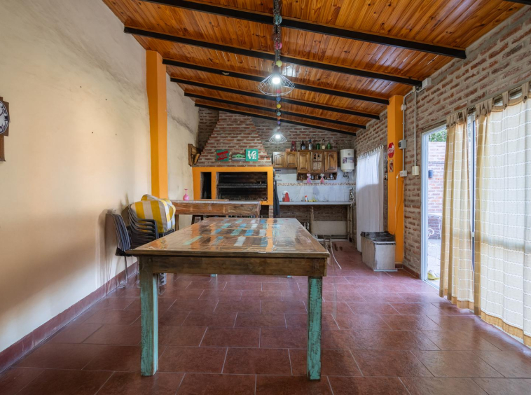 Casa 5 ambientes con parque, quincho y parrilla en Villa Madero: la misma cuenta con living comedor, cocina totalmente equipada con muebles altos y bajos, mesada en u de marmol con pisos porcelanato ambos ambientes, tres habitaciones con placares embutidos y pisos porcelanato, dos baños totalmente equipados, dos patios, parque, cuarto de guardado, quincho totalmente equipado con baño completo y parrilla, cochera para dos vehículos.