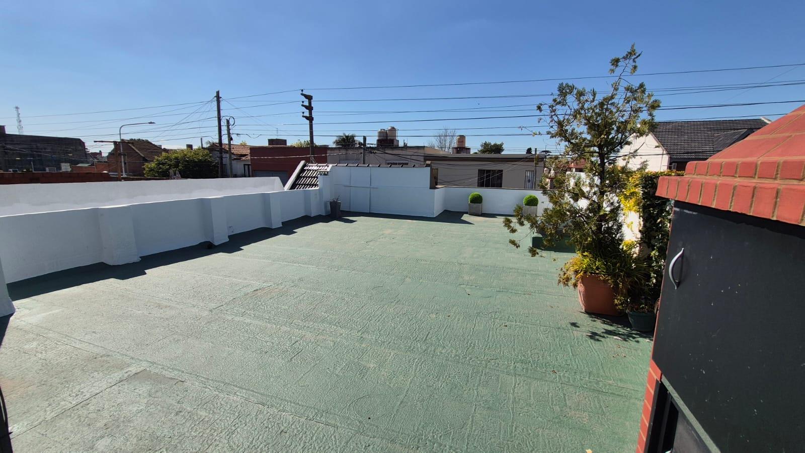 1° Excelente casa al frente con rejas de hierro macizo artistico y vereda hecha de hormigon con baldosas recien colocadas, la casa es de 3 ambientes amplios cuenta con dos habitaciones con piso de parquet, grandes ventanales con doble vidrio, baño completo con hidromasaje piso y pared de porcelanatto, griferia Europea como también demás equipamiento, living con hogar a gas, cocina comedor, y un gran salón comedor con 2 aires acondicionados frio/calor marca BGH y guarda útiles/despensa, patio con jardin vertical marca Just Green, terraza de 120 mts con Lavadero cubierto, altillo, Parrilla. Tanque de agua con filtrado, equipo presurizador de agua mara Rowa y bomba inteligente elevadora de agua marca Rowa.