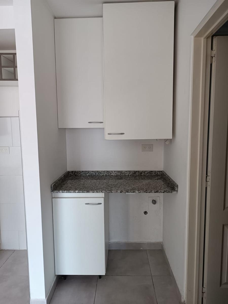 Cuenta con living comedor con salida al balcón, cocina integrada equipada con muebles bajo mesada y alacena, espacio para lavarropas, baño completo